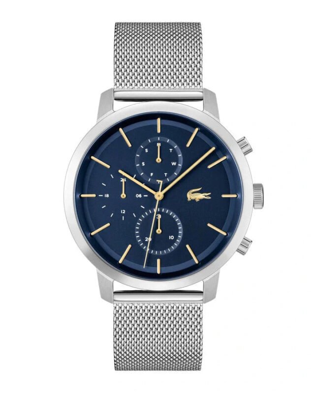 The Lacoste Watch for men 2011256 combines classic style with reliable performance. Designed for everyday wear. Shipping all Over Egypt within 2-3 days. Brand LACOSTE Collection REPLAY Model 2011256 Warranty 2 years Color blue / silver Movement battery Water resistance 50M/5ATM Crystal mineral Digits on the dial indexes Diameter 45 mm Thickness 11 mm Width 21 mm Gender men’s Type analog Weight 93 g