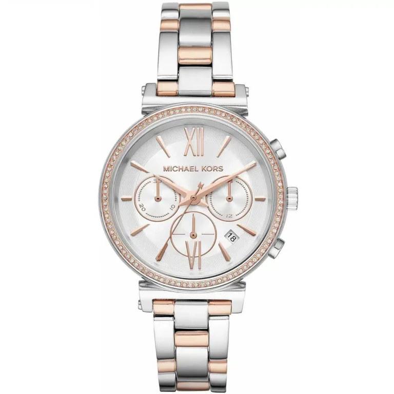 EGP3,400.00ساعة مايكل كورس للنساء اصلية موديل (صوفي) Sofie MK6558 بلون ابيض واستيك معدن بلون فضي و نحاسي