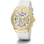 ساعة جيس Guess نسائي أصلية موديل ( أثينا ) GW0409L2 Athena بلون فضي و استيك سيليكون مطاط بلون ابيض
