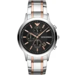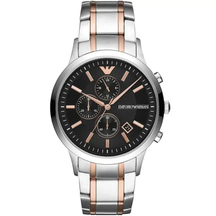 ساعة امبوريو ارماني للرجال اصلية موديل ( ريناتو) Renato AR11165 بلون اسود واستيك لون فضي و نحاسي