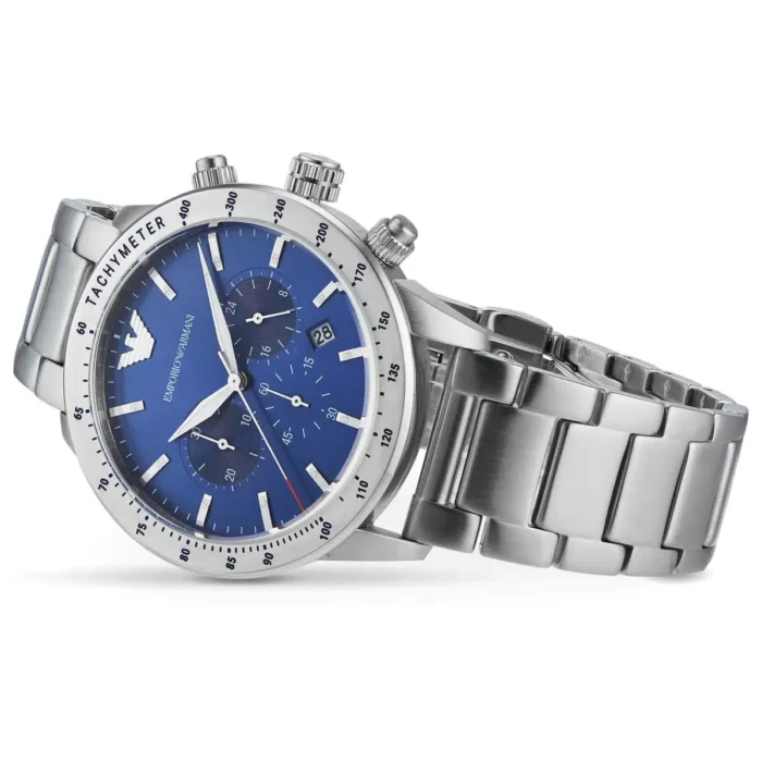 ساعة امبوريو ارماني رجالي أصلية موديل (ماريو) Mario AR11306 بلون ازرق و استيك معدن بلون فضي