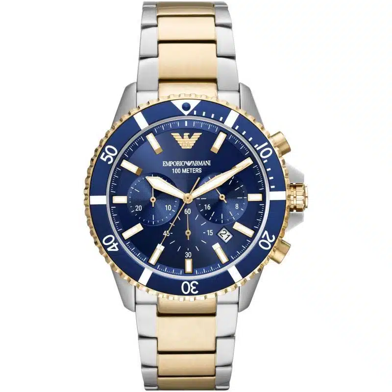 ساعة امبوريو ارماني اصليه للرجال موديل AR11362 بلون ازرق واوستيك معدن بلون ذهبي* فضي