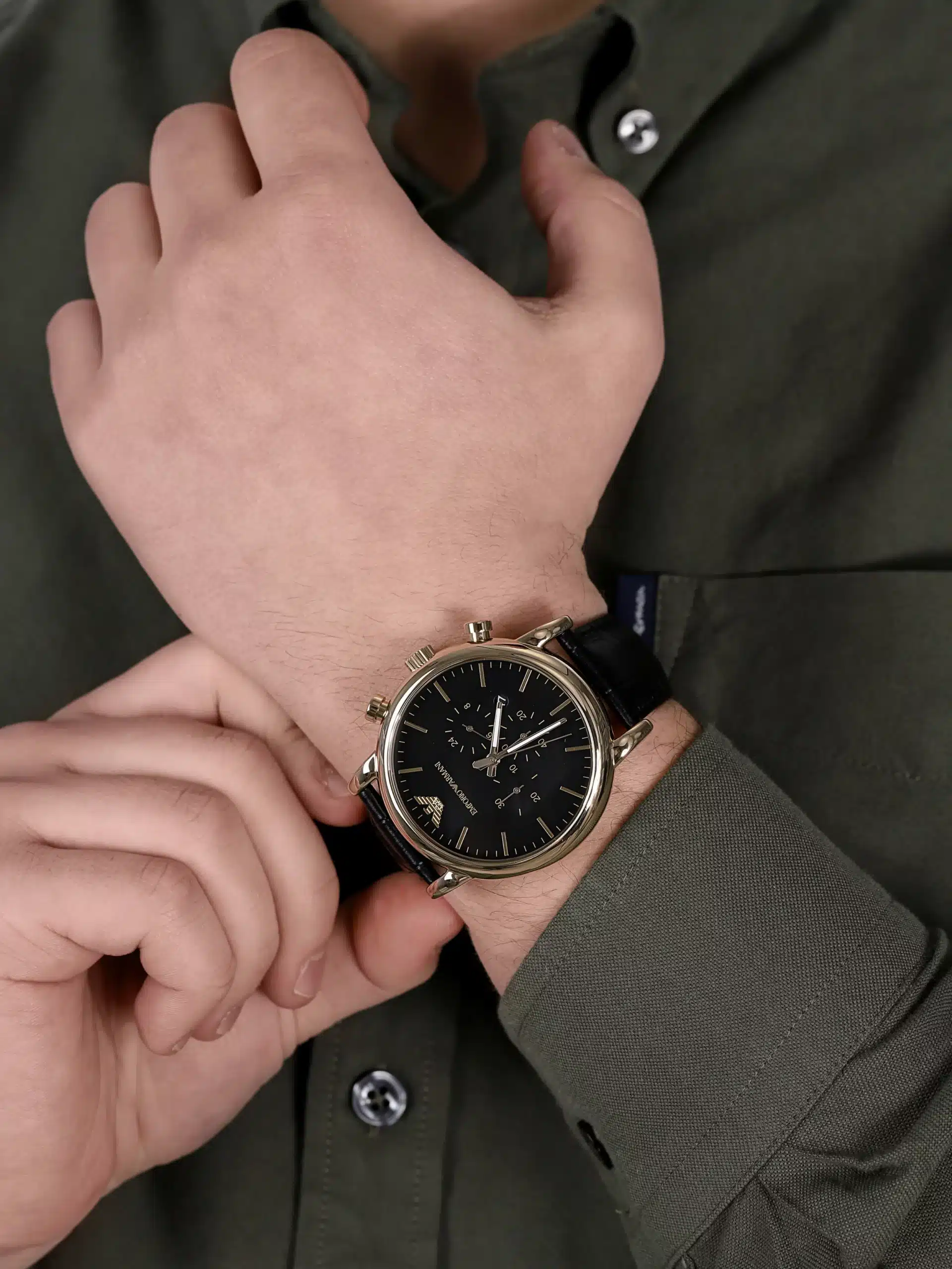 ساعة امبوريو ارماني للرجال اصلية موديل ( لوجي ) Luigi AR1917 بلون اسود واستيك لون اسود