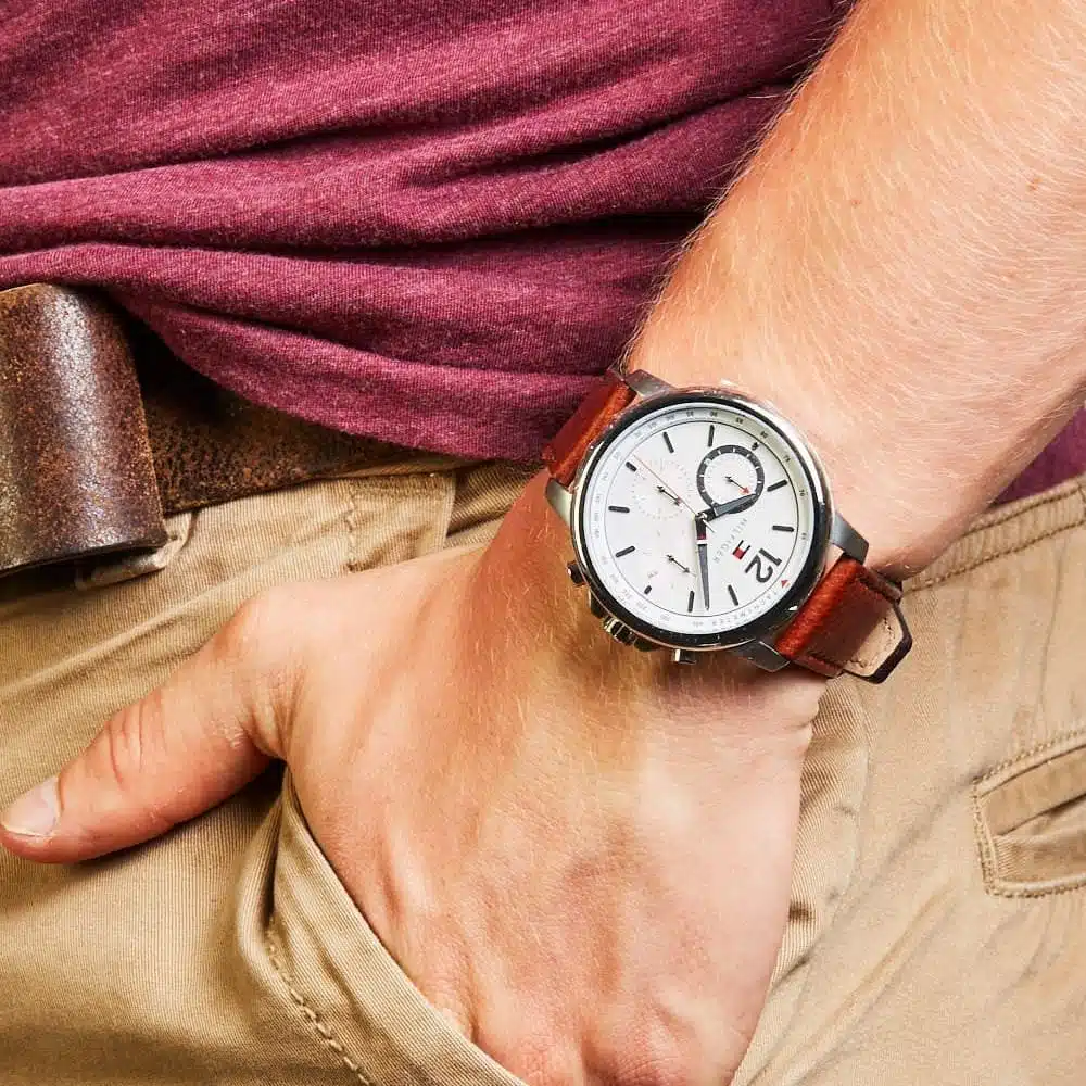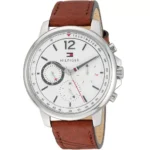 ساعة تومي هيلفيغر للرجال اصلية موديل (لاندن) Landon 1791531 بلون ابيض واستيك جلد لون بني