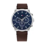 ساعة تومي هيلفيغر للرجال اصلية موديل (كوير) Cuir 1791797 بلون ازرق واستيك جلد لون بني