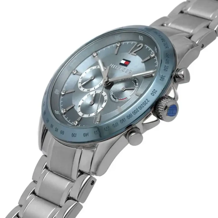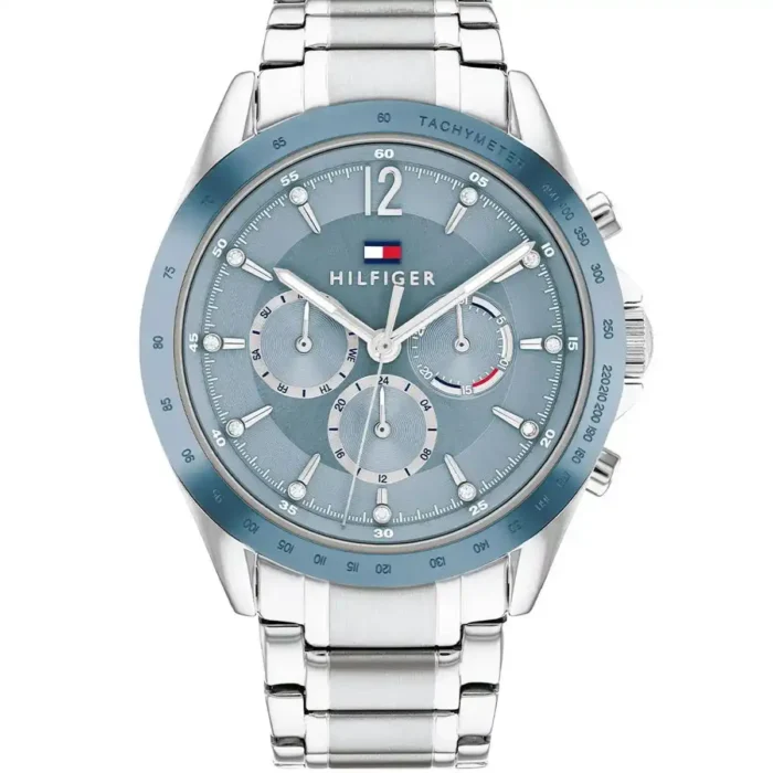 ساعة تومي هيلفيغر للنساء أصلية موديل 1782554 لون ازرق و استيك معدن ستانلس لون فضي.