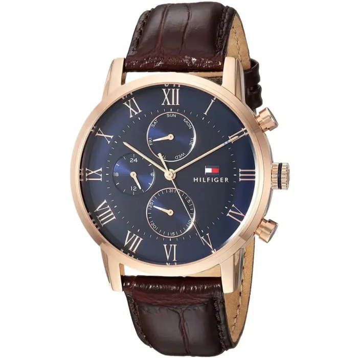 ساعة تومي هيلفيغر للرجال اصلية موديل (كين) Kane 1791399 بلون ازرق واستيك جلد لون بني