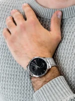 بلون اسود و استيك معدن ستانلس ستيل بلون فضي