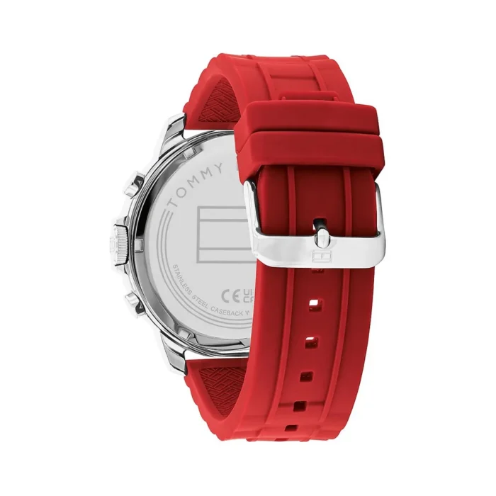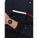ساعة تومي هيلفيغر للرجال اصلية موديل (لوكا) Luca 1710489 بلون اسود واستيك مطاط لون احمر