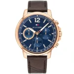 ساعة تومي هيلفيغر للرجال اصلية موديل (لاندن) Landon 1791532 بلون ازرق واستيك جلد لون بني