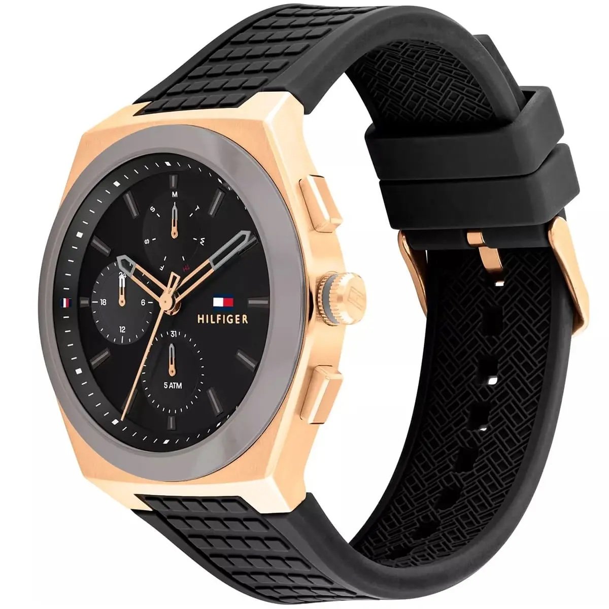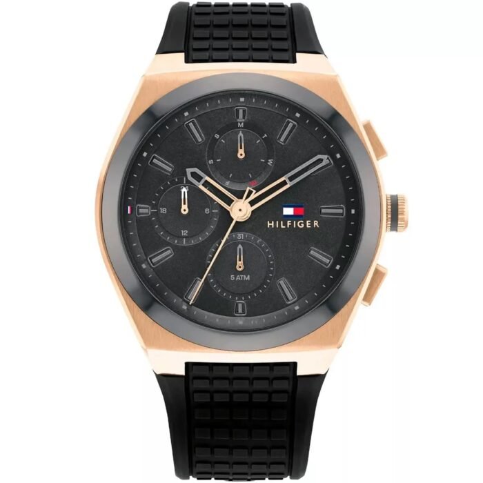 ساعة تومي هيلفيغر Tommy Hilfiger رجالي أصلية موديل (كونور) 1791931 Connor بلون اسود و استيك مطاط (سيليكون) بلون اسود