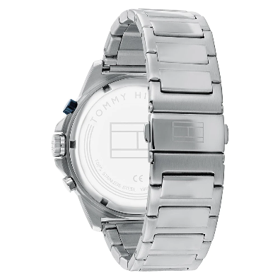 ساعة تومي هيلفيغر رجالي أصلية موديل (هاري) Harley 1791932 بلون ازرق و استيك ستنلس ستيل بلون فضي