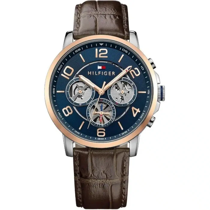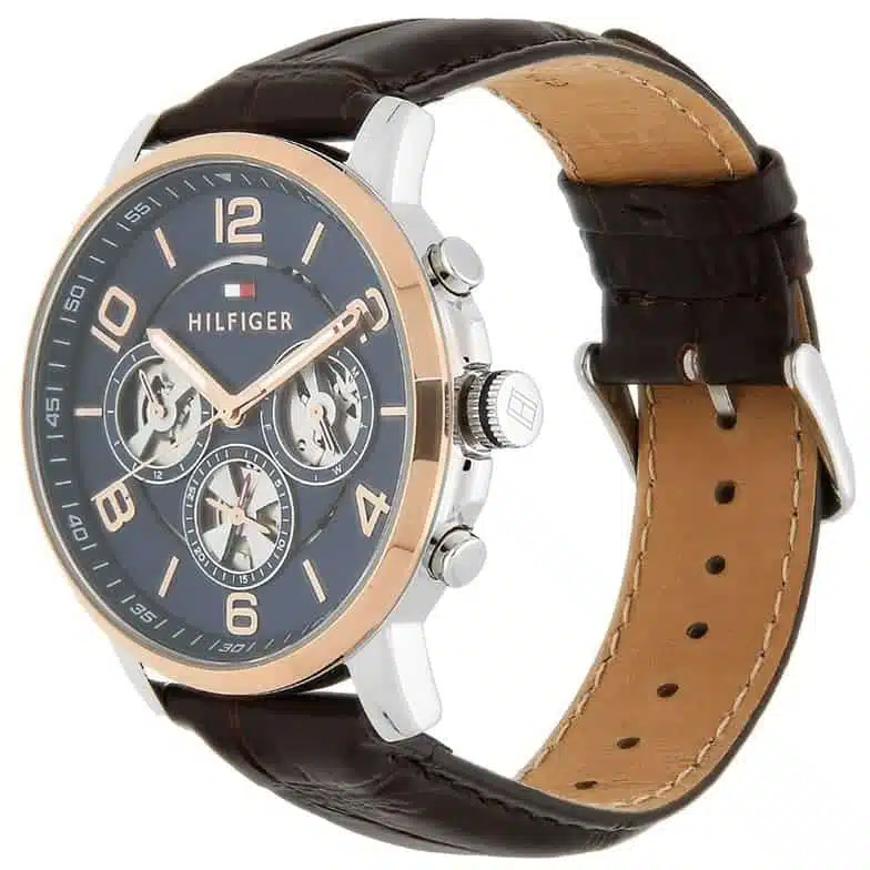 ساعة تومي هيلفيغر للرجال اصلية موديل (كيجان) Keagan 1791290 بلون ازرق واستيك جلد لون بني