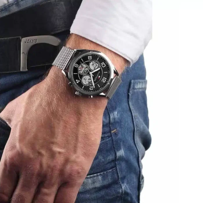 ساعة تومي هيلفيغر للرجال اصلية موديل (كيجان) Keagan 1791292 بلون اسود واستيك معدن لون فضي