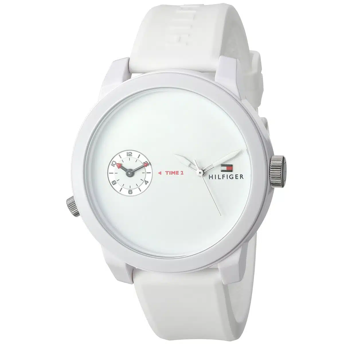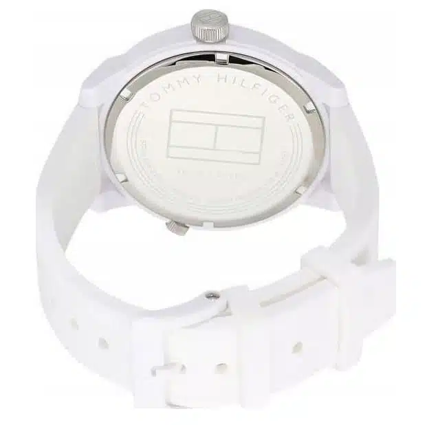 ساعة تومي هيلفيغر رجالي أصلية موديل (دنيم) Denim 1791324 بلون ابيض و استيك مطاط بلون ابيض