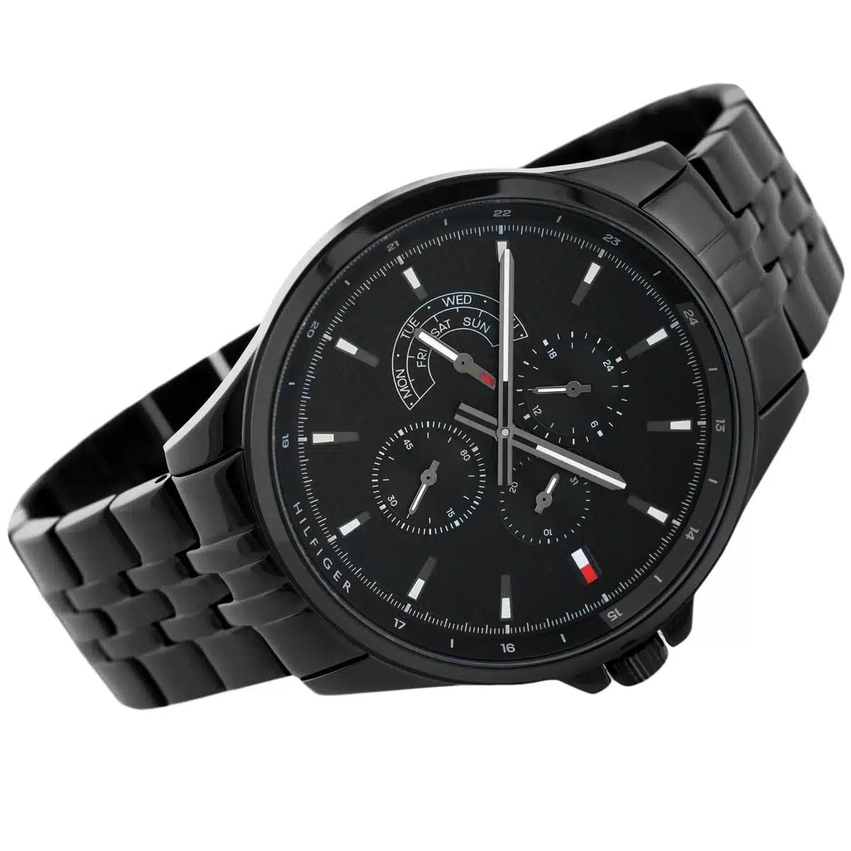 ساعة تومي هيلفيغر للرجال اصلية موديل (شاون) Shawn 1791611 بلون اسود واستيك معدن لون اسود