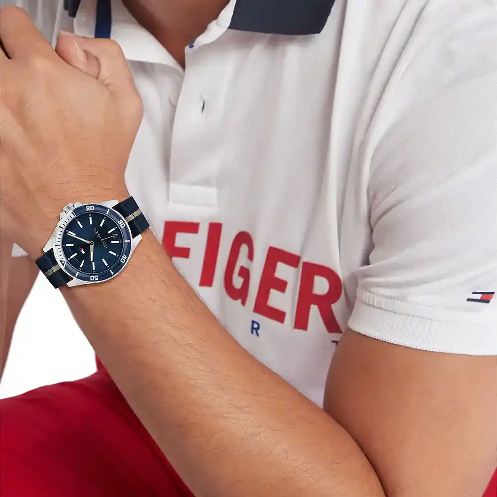ساعة تومي هيلفيغر للرجال أصلية موديل 1792011 لون ازرق و استيك الياف صناعية لون ازرق.
