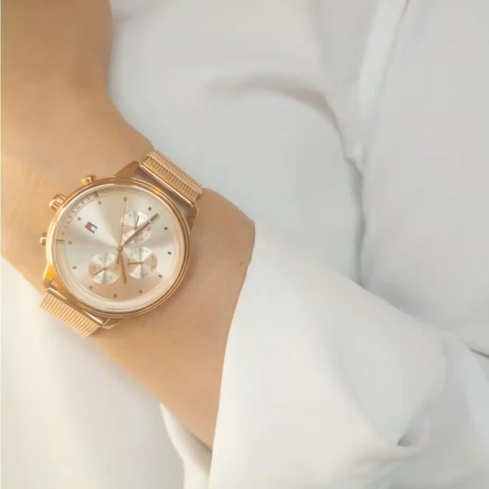 ساعة تومي هيلفيغر حريمي أصلية موديل 1781907 بلون نحاسي و استيك معدن بلون نحاسي
