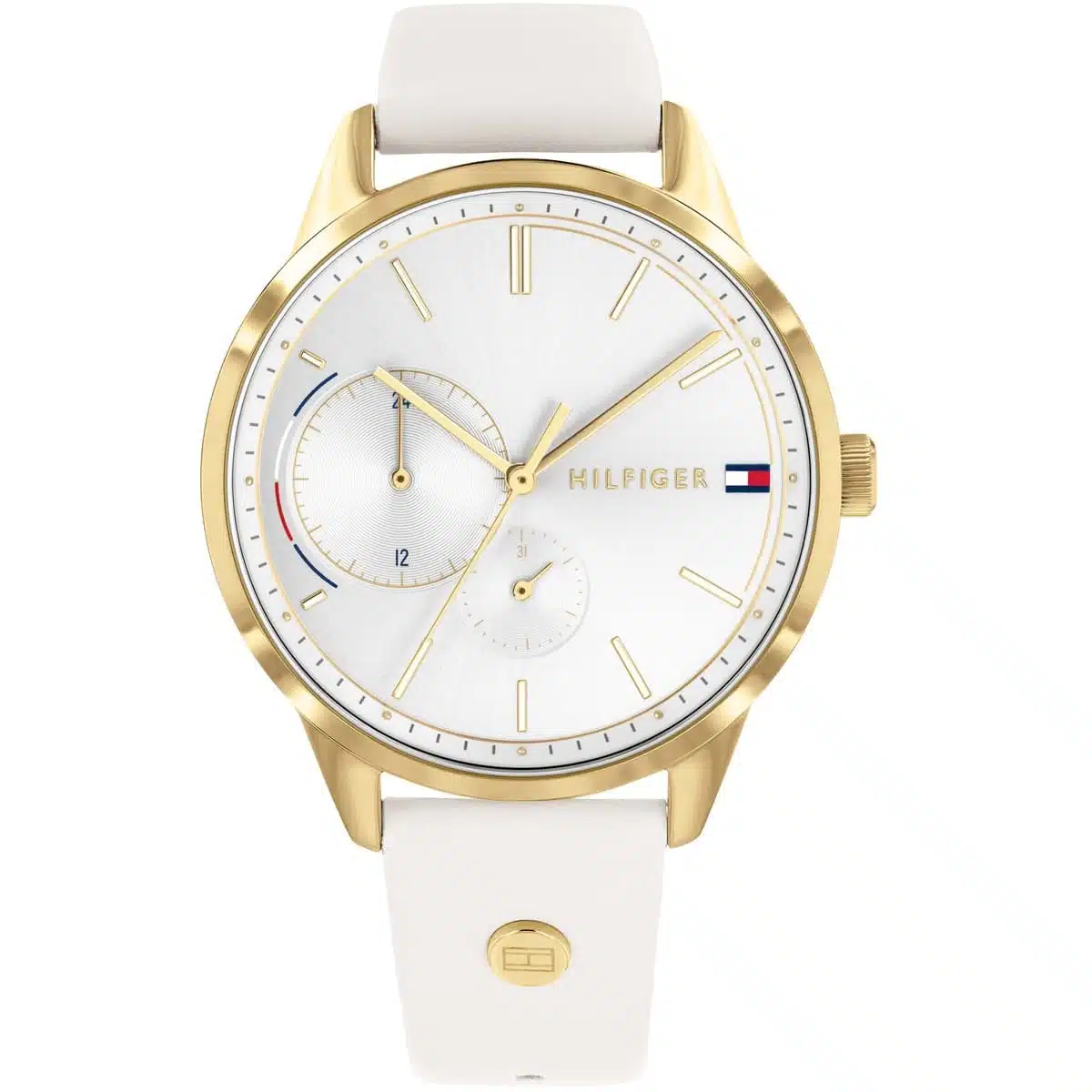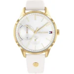 ساعة تومي هيلفيغر للنساء اصلية موديل (بروك) Brooke 1782018 بلون فضي واستيك جلد لون ابيض