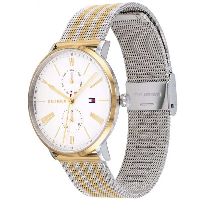 ساعة تومي هيلفيغر حريمي أصلية موديل (جينا) Jenna 1782074 بلون ابيض و استيك معدن بلون فضي و ذهبي