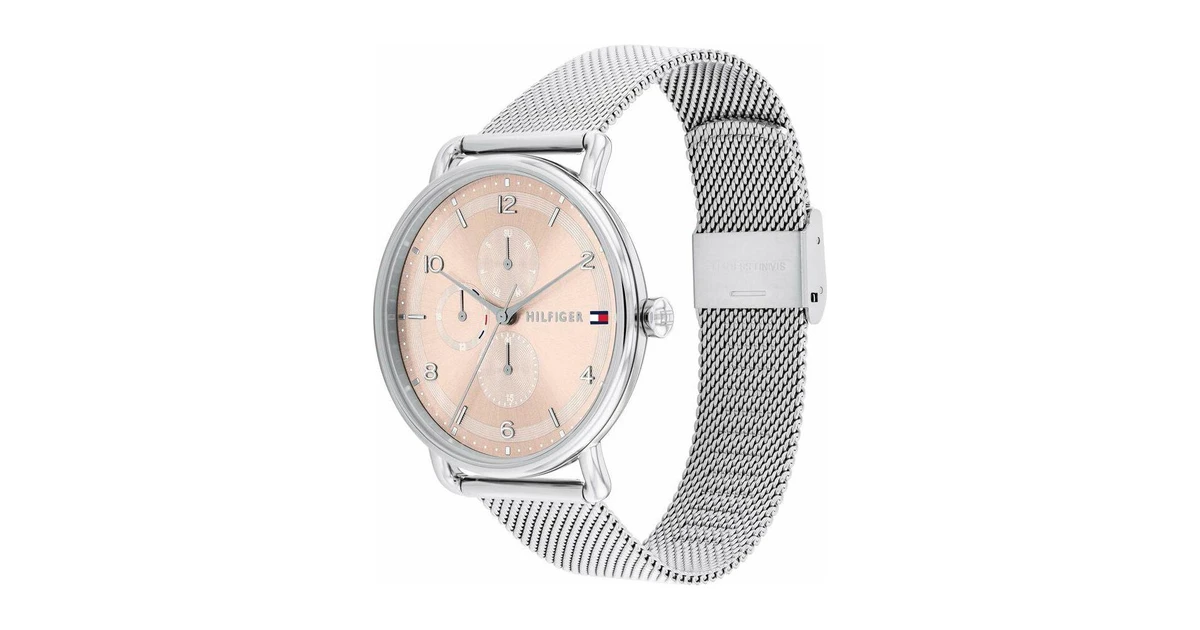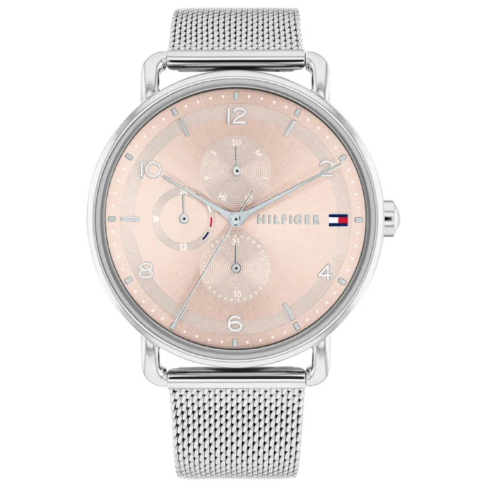 ساعة تومي هيلفيغر Tommy Hilfiger للنساء أصلية موديل Lily 1782662 لون وردي و استيك معدن ستانلس لون فضي.