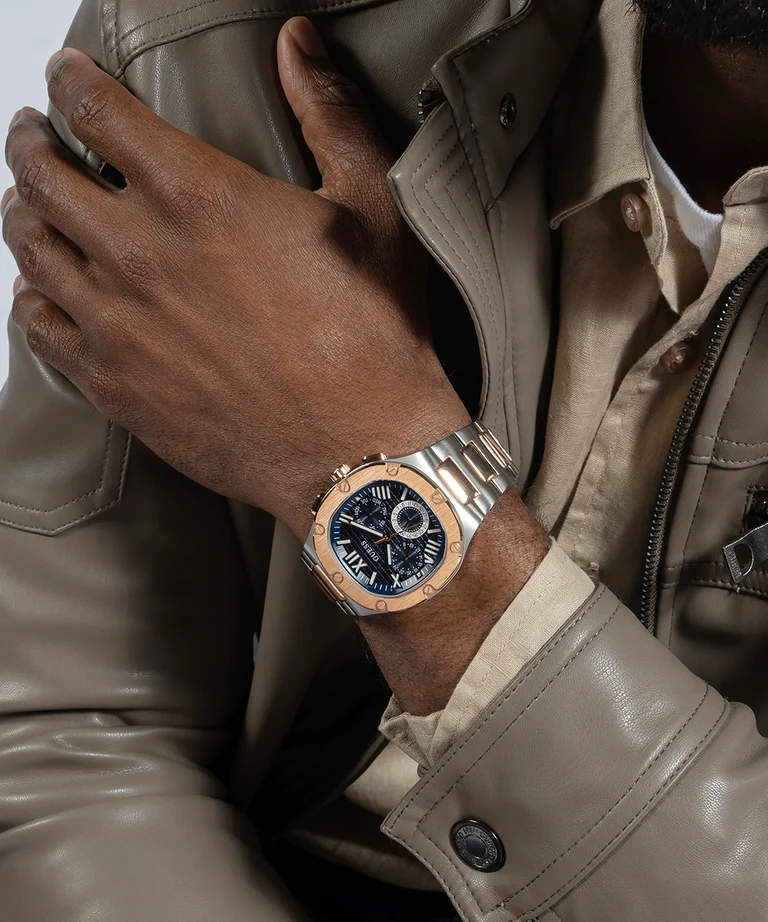 ساعة جيس للرجال أصلية موديل (هيد لاين)  headline GW0572G4 بلون ازرق و استيك معدن بلون فضي و نحاسي