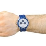 ساعة جيس للرجال اصلية موديل (كاليبر) Caliber W0864G6 بلون فضي واستيك مطاط بلون ازرق