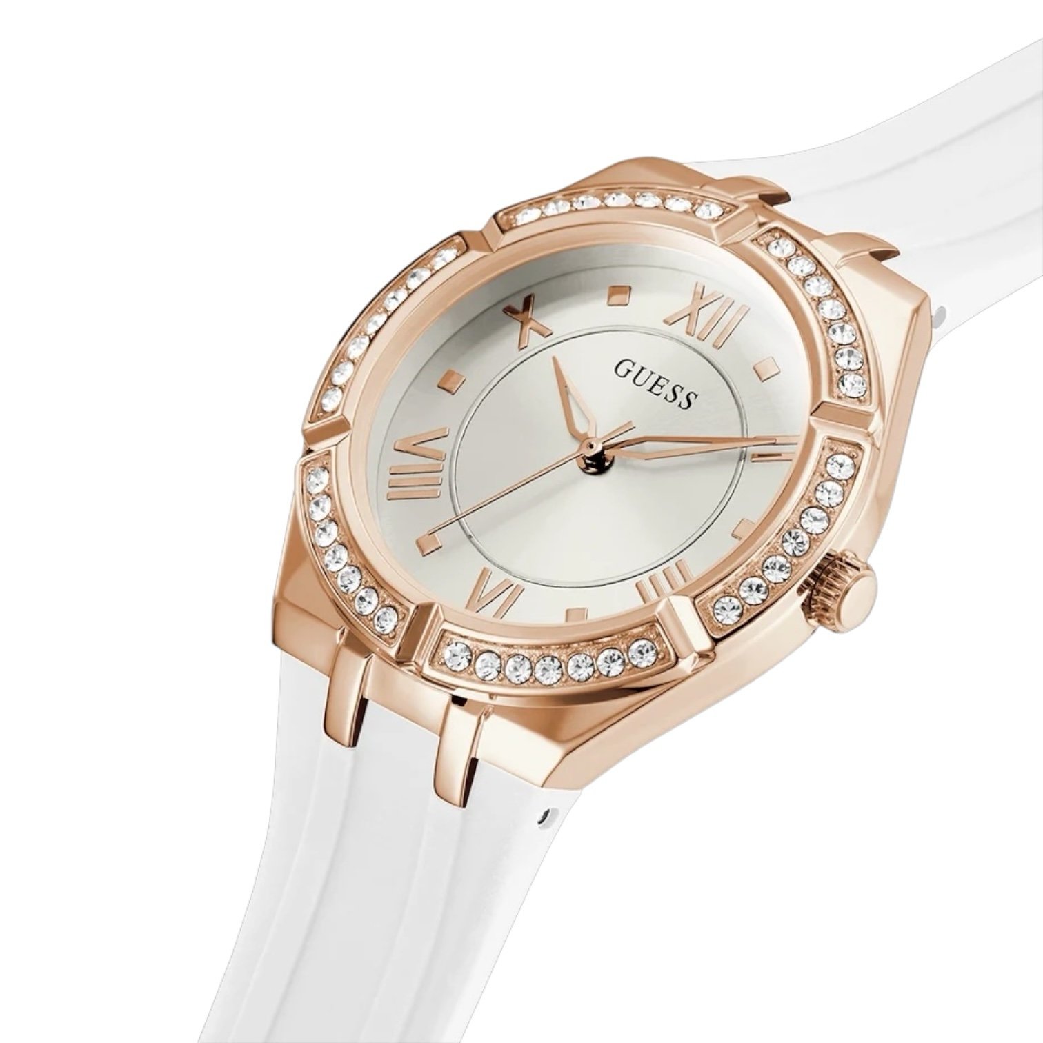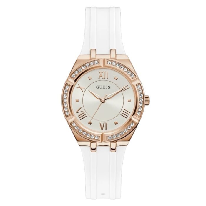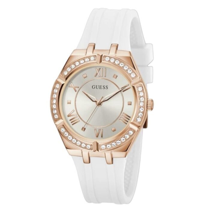ساعة جيس Guess نسائي أصلية موديل ( كوزمو ) GW0034L2 Cosmo بلون فضي و استيك سيليكون مطاط بلون ابيض