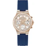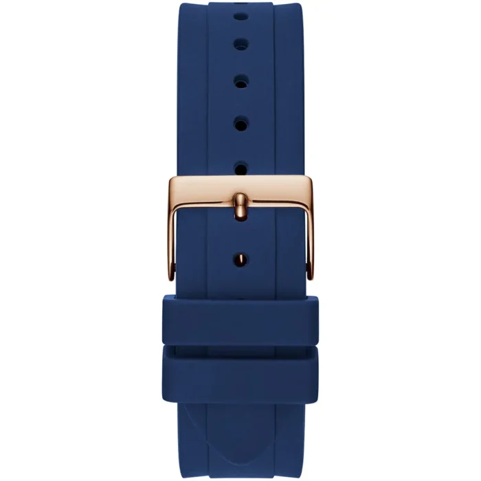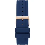 ساعة جيس Guess نسائي أصلية موديل ( مون لايت ) GW0257L3 Moonlight بلون نحاسي ( روز جولد ) و استيك سيليكون مطاط بلون ازرق