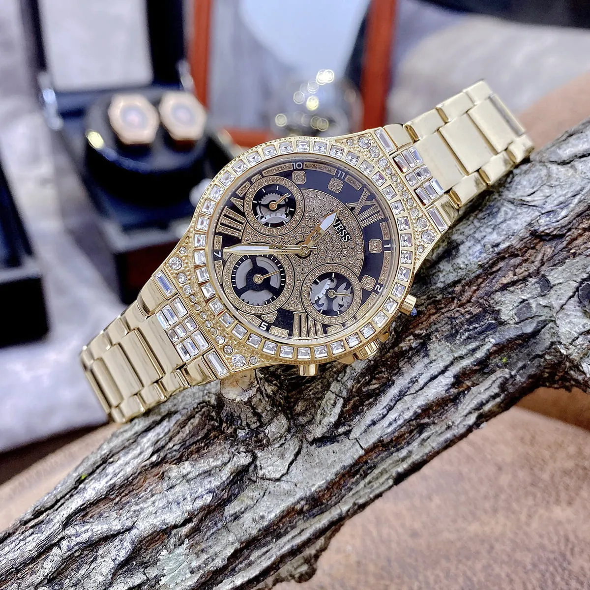 الساعة مزينة بفصوص كريستال