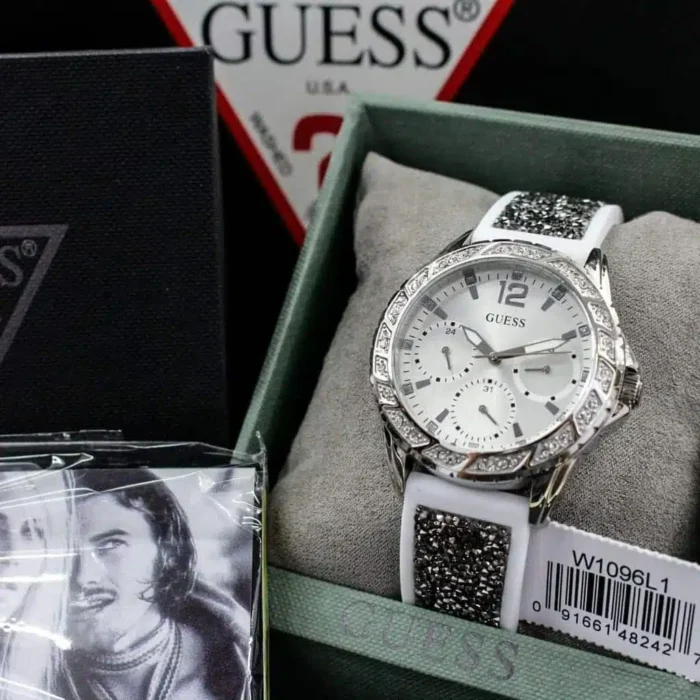 ساعة جيس للنساء اصلية موديل (سويرل) Swirl W1096L1 بلون ابيض واستيك مطاط بلون ابيض