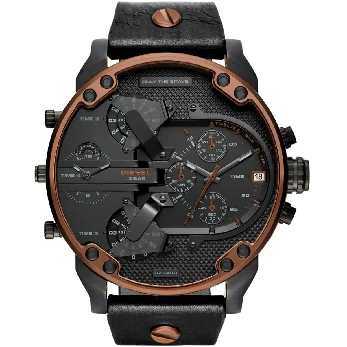 ساعة ديزل رجالى اصلية موديل (مستر دادي 2.0) Mr. Daddy 2.0 DZ7400 بلون اسود واستيك لون اسود
