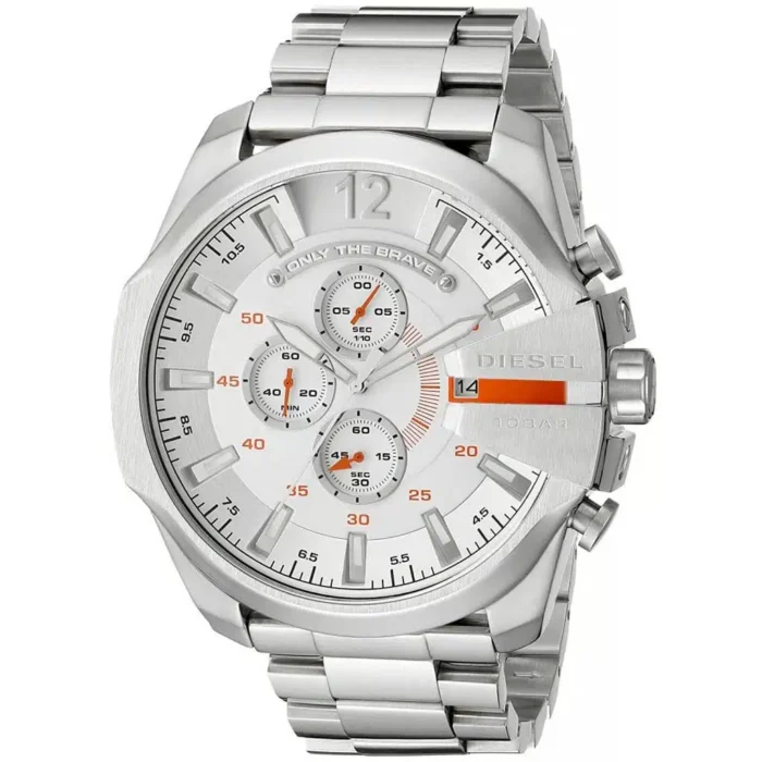 ساعة ديزل للرجال أصلية موديل (ميجا شيف) Mega Chief DZ4328 بلون ابيض و استيك معدن بلون فضي