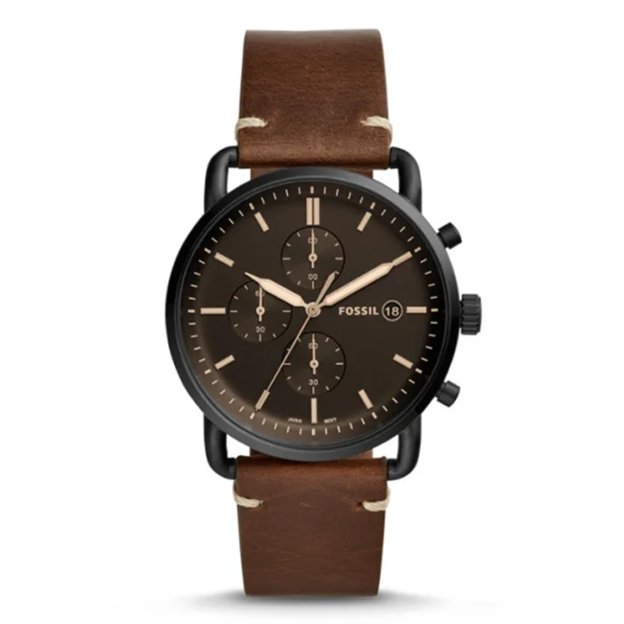 ساعة فوسيل للرجال اصلية موديل (كوميوتر) The Commuter FS5403 بلون واستيك جلد بلون بني