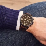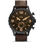 ساعة فوسيل للرجال اصلية موديل (نايت) Nate JR1487 بلون اسود واستيك جلد بلون بني