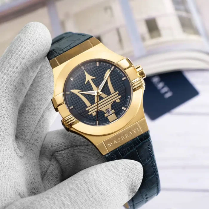 ساعة مازيراتي رجالي أصلية موديل (بوتينزا) R8851108035 Potenza بلون ازرق و استيك جلد طبيعي بلون ازرق