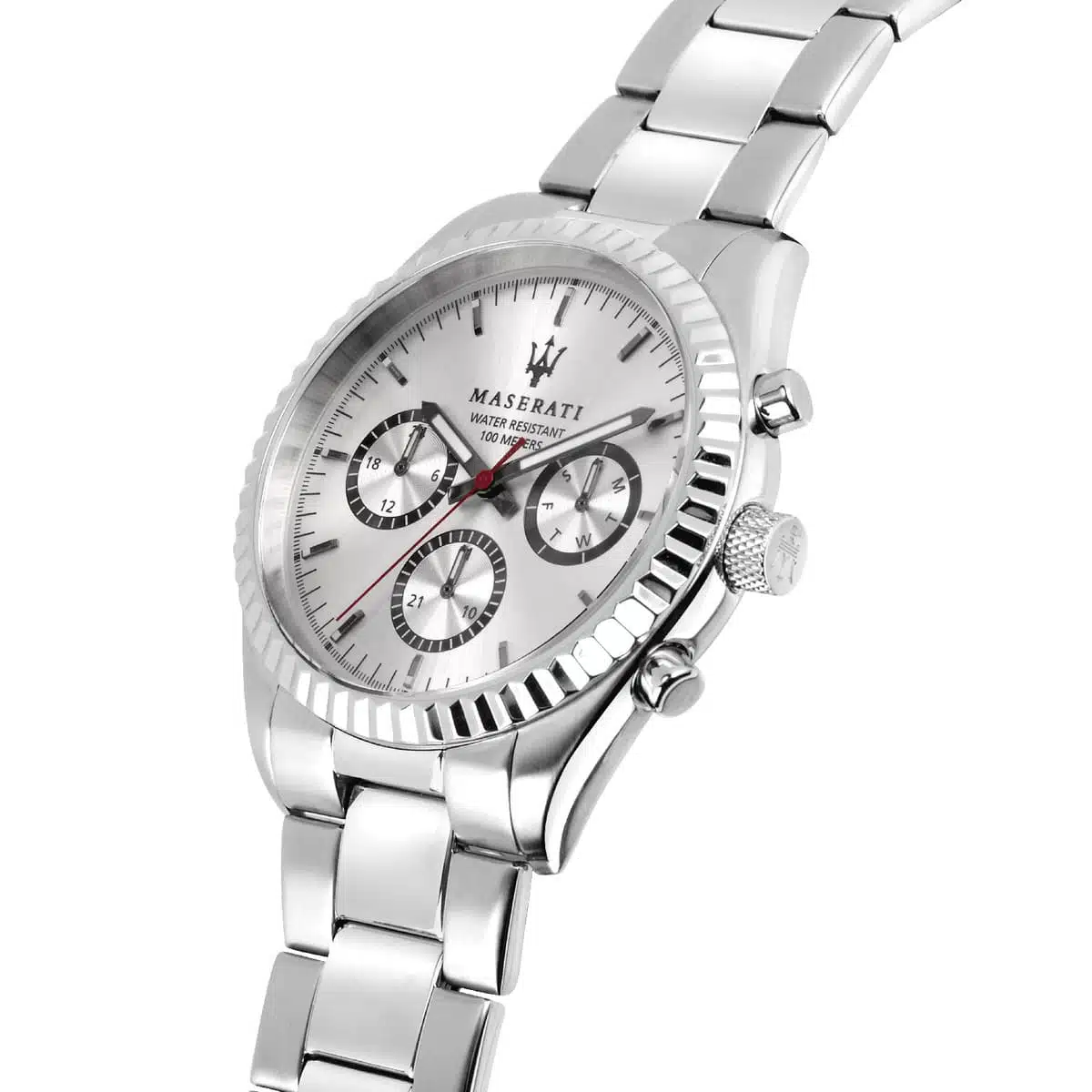 ساعة مازيراتي رجالي أصلية موديل (كومبيتيسيوني) R8853100018 Competizione بلون فضي و استيك معدن ستانلس ستيل بلون فضي