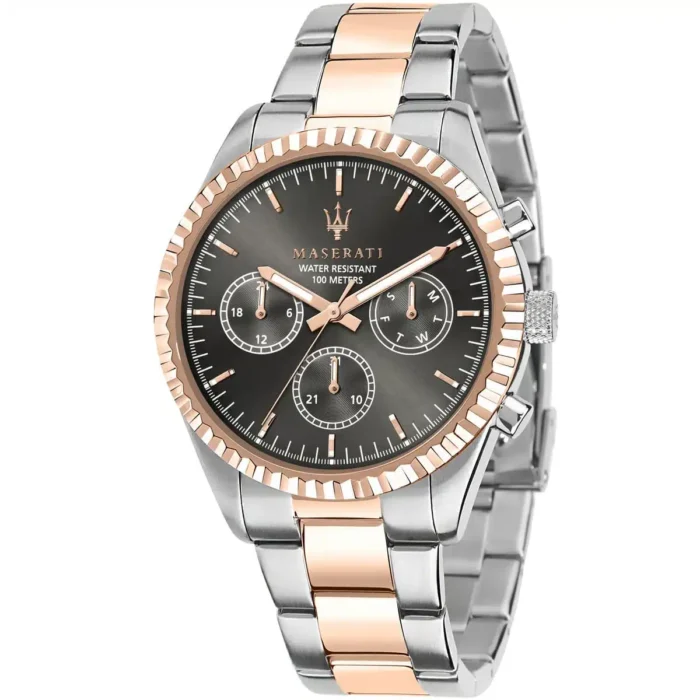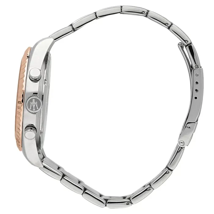 ساعة مازيراتي رجالي أصلية موديل (كومبيتيسيوني) R8853100020 Competizione بلون اسود و استيك معدن ستانلس ستيل بلون فضي و نحاسي