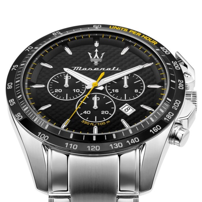ساعة مازيراتي للرجال أصلية موديل R8873612042 لون اسود و استيك معدن ستانلس ستيل لون فضي.