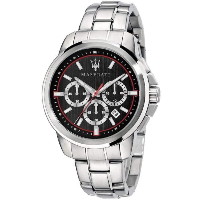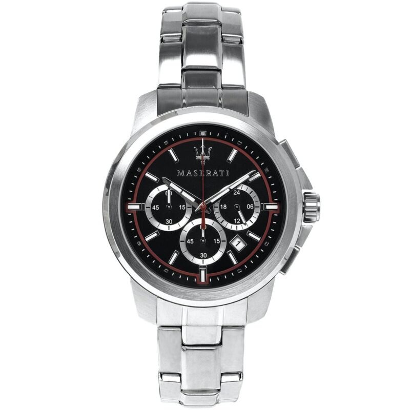 ساعة مازيراتي رجالي أصلية موديل (ساكسيسو) R8873621009 Successo بلون اسود و استيك معدن ستانلس ستيل بلون فضي