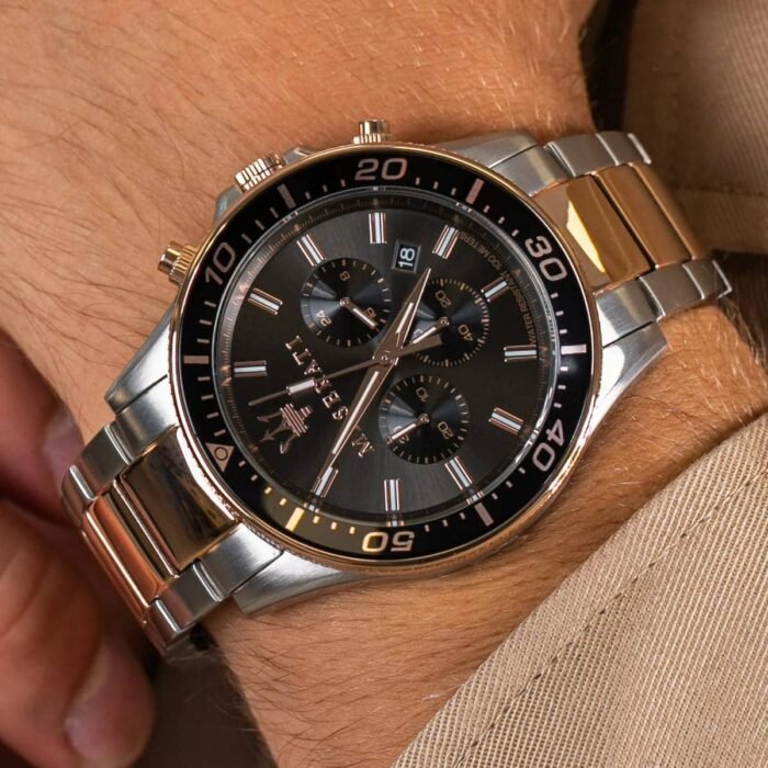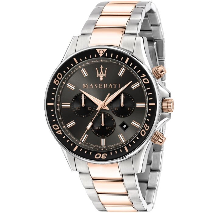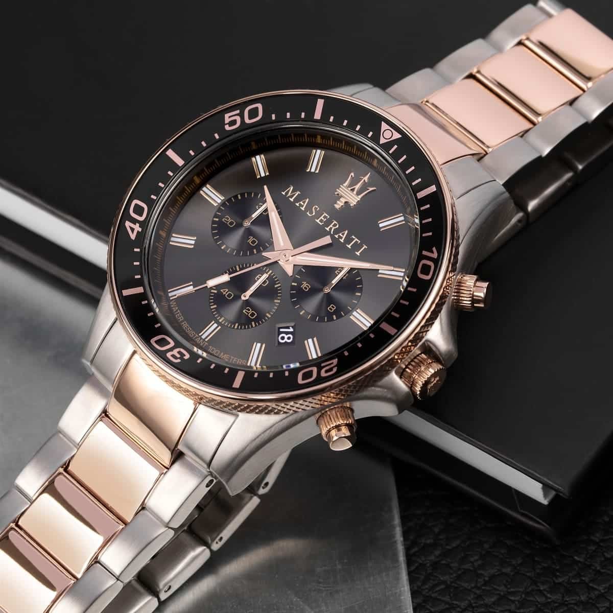 ساعة مازيراتي للرجال أصلية موديل R8873640002 Sfida لون اسود واستيك معدن لون فضي x روز جولد.
