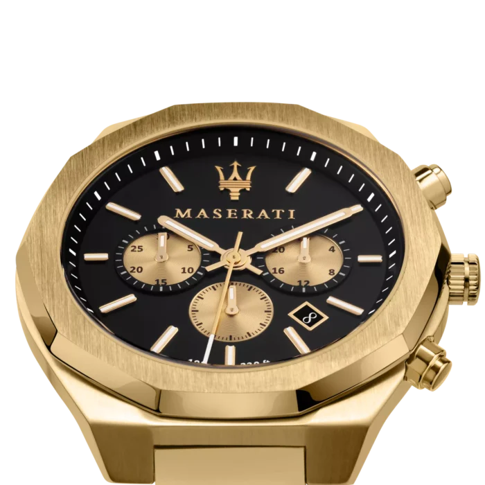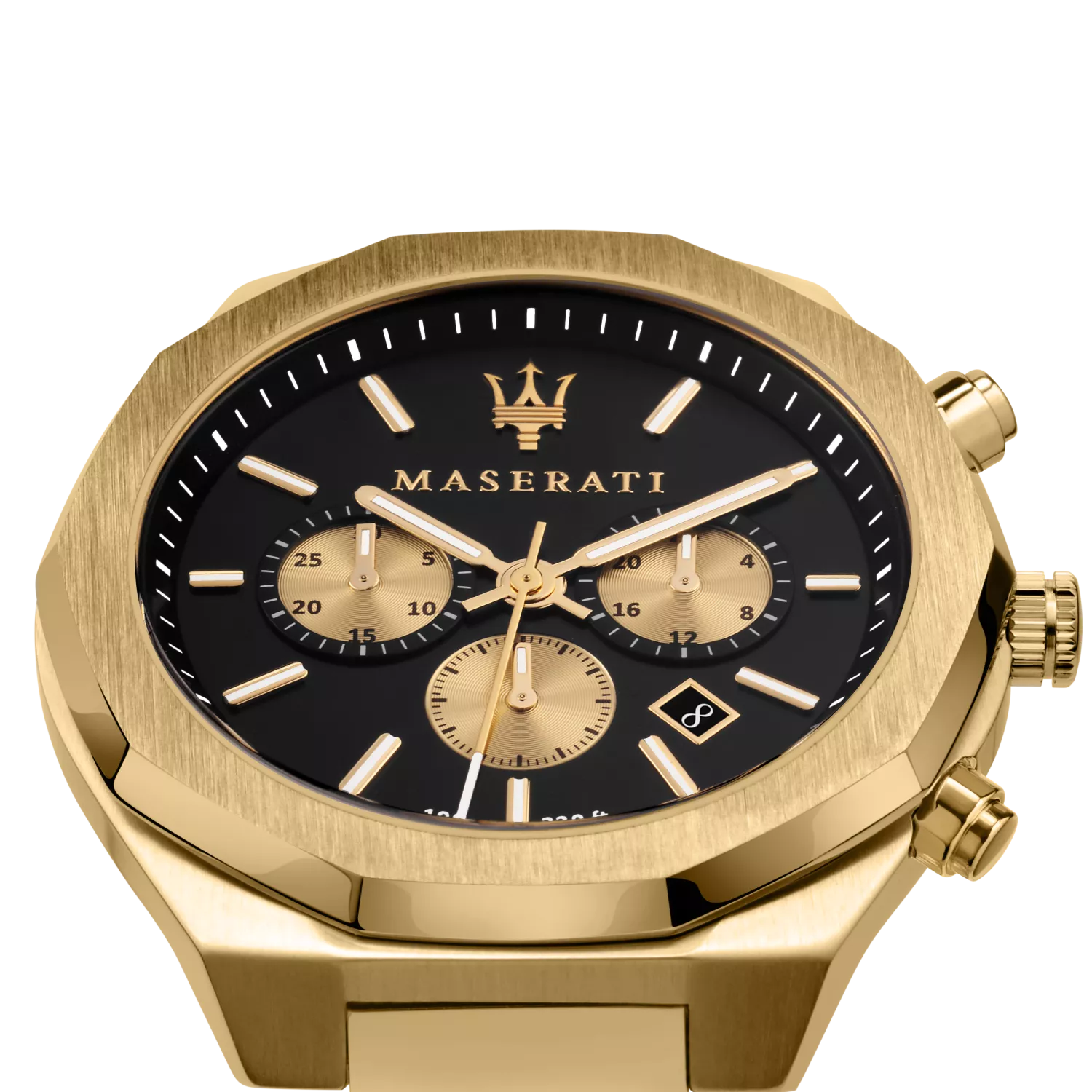 ساعة مازيراتي للرجال أصلية موديل R8873642001 Stile لون اسود و استيك معدن ستانلس ستيل لون ذهبي.