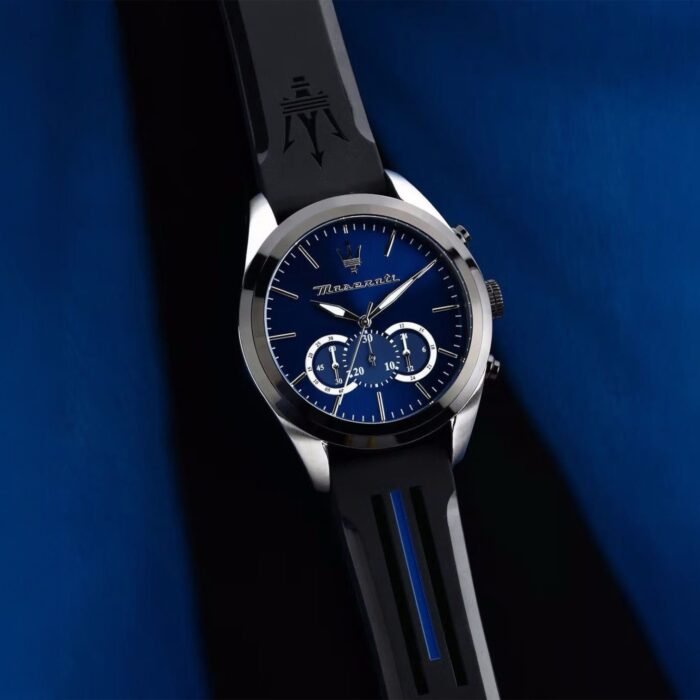 ساعة مازيراتي رجالي أصلية موديل (تراجواردو) R8871612044 Traguardo بلون ازرق و استيك مطاط بلون اسود