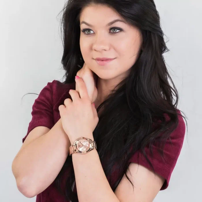 ساعة مايكل كورس للنساء اصلية موديل (برادشو ميني) Mini Bradshaw MK5799 بلون نحاسي واستيك معدن بلون نحاسي