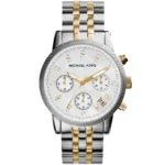ساعة مايكل كورس حريمي أصلية موديل (ريتز) Ritz MK5057 بلون ابيض و استيك معدن بلون فضي و ذهبي