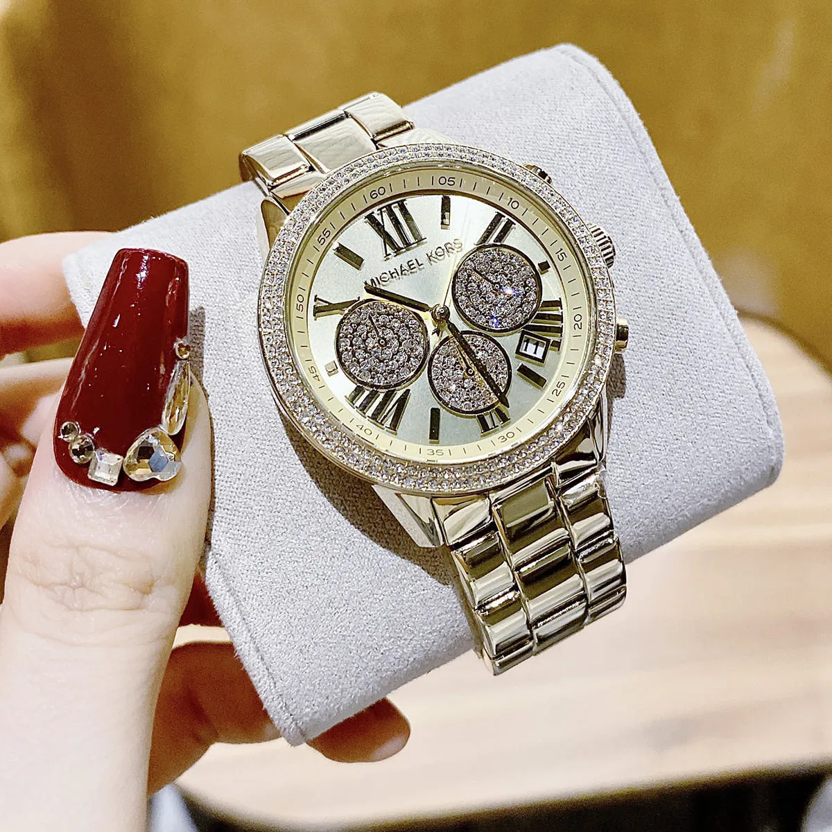 الساعة مزينة بفصوص كريستال