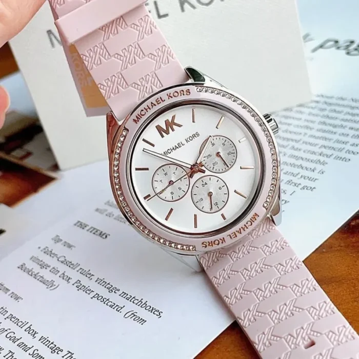 ساعة مايكل كورس Michael Kors حريمي أصلية موديل ( جيسا ) MK7268 Jessa بلون فضي و استيك جلد بلون وردي