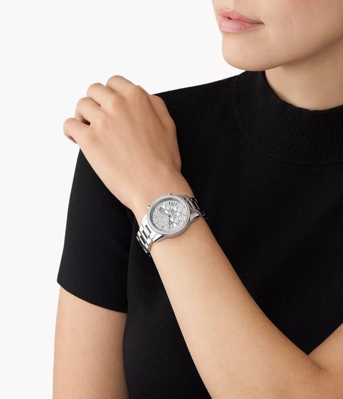 ساعة مايكل كورس للنساء اصلية موديل (ريتز) Ritz MK7301 بلون فضي واستيك معدن بلون فضي