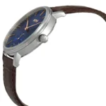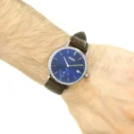 بلون ازرق و استيك جلد طبيعي بلون بني
