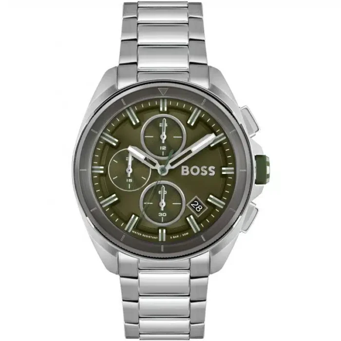 ساعة هوحو بوص اصليه للرجال موديل 1513951 بلون اخضر واوستيك استانلس بلون فضي